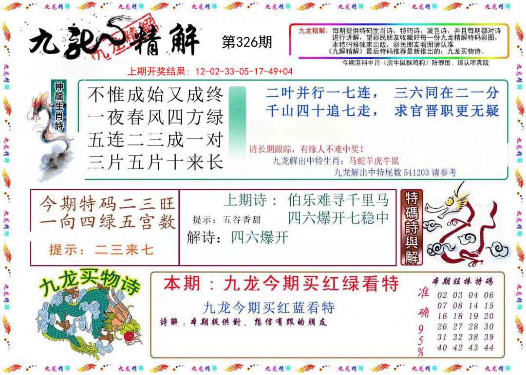 325期: 六尾中特 【012349】 开虎04准