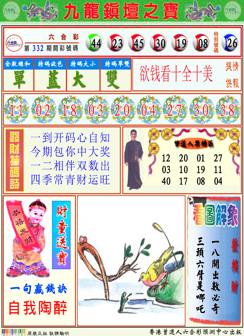 332期: 单双两肖 双数+羊鸡 开龙26准